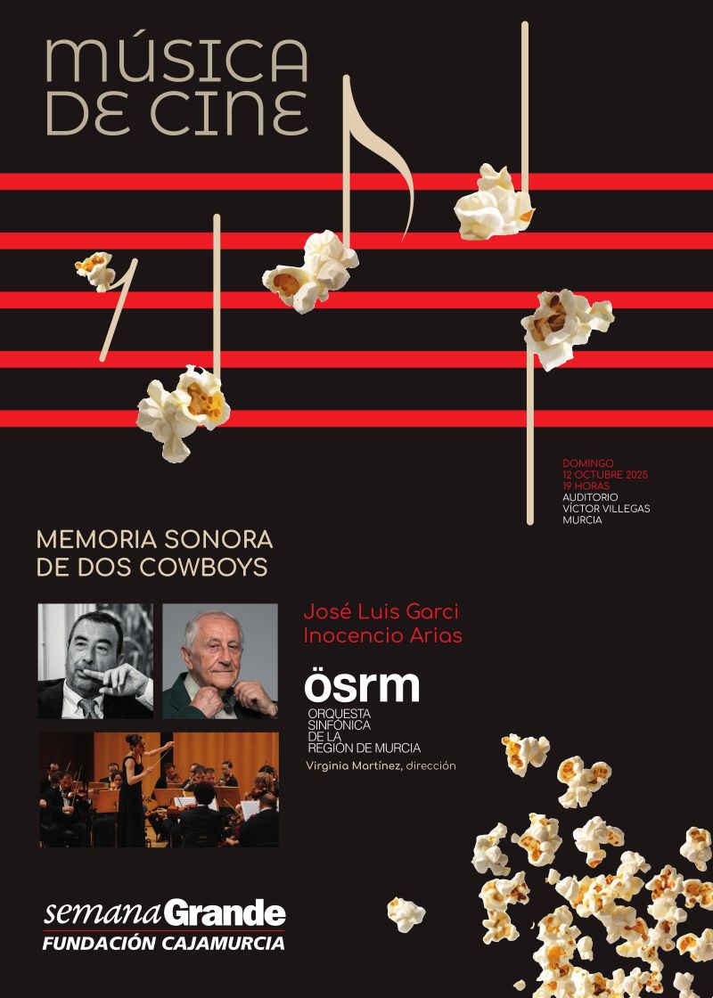 La Semana Grande de la Fundación Cajamurcia incluye en su programación una novedosa propuesta musical en la que el director de cine José Luis Garci y el diplomático y escritor Inocencio Arias realizarán un recorrido por las bandas sonoras de películas que han marcado sus vidas, interpretadas por la Orquesta Sinfónica de la Región de Murcia bajo la dirección de Virginia Martínez. Cineasta y cinéfilo, amigos íntimos, comentarán algunas de las composiciones más importantes de la historia del Séptimo Arte y de sus trayectorias vitales. Una oportunidad única para disfrutar de un encuentro entre la música, la palabra y el cine.