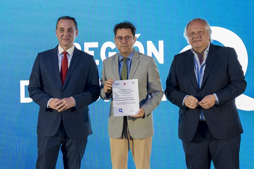 El Auditorio Víctor Villegas, el primer centro de congresos de España certificado con la 'S de sostenibilidad turística', recibió anoche la distinción, junto con la ‘Q de Calidad Turística’, ambas del Instituto para la Calidad Turística.