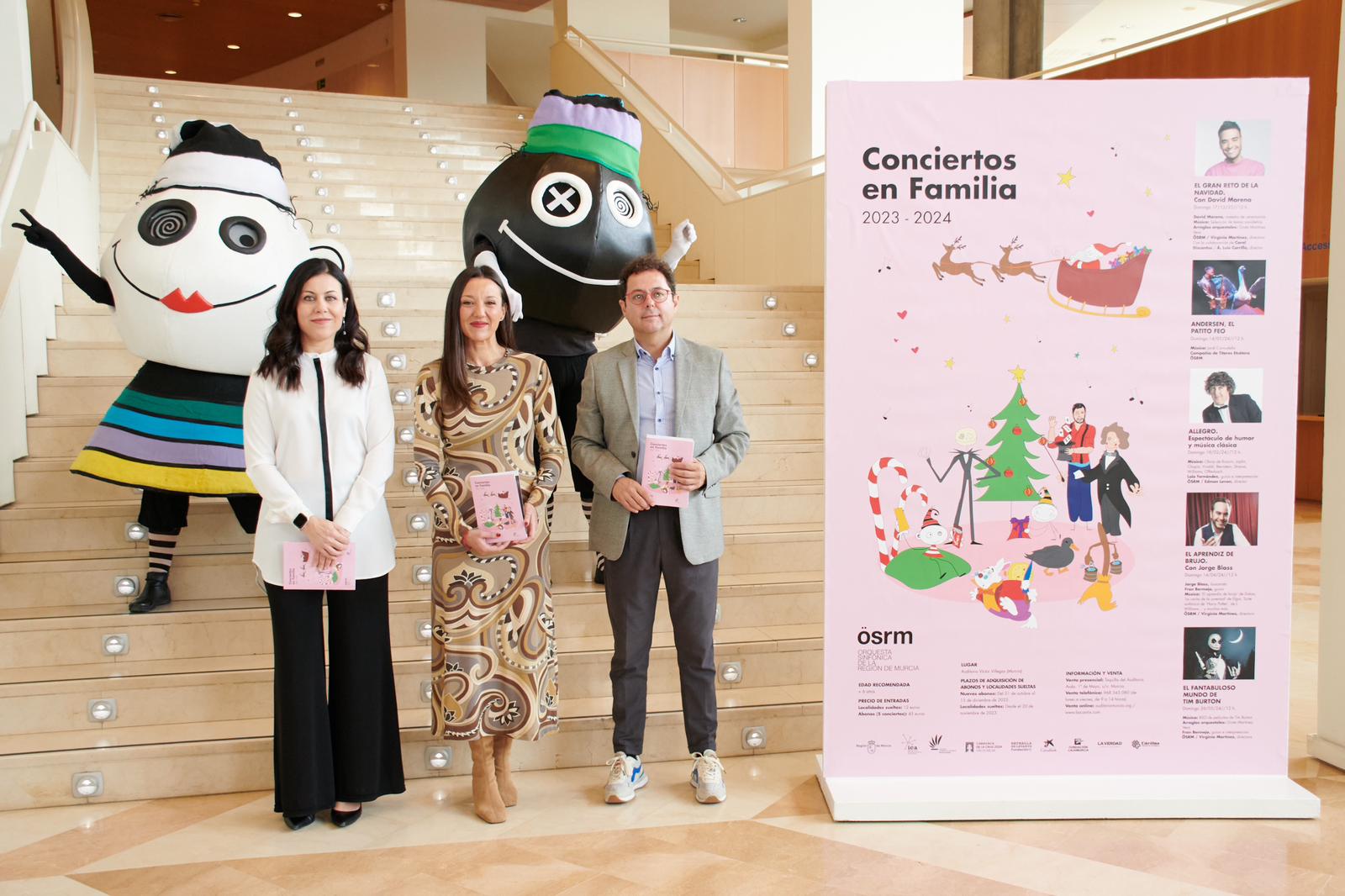 La Consejería de Turismo, Cultura, Juventud y Deportes presentó hoy la nueva temporada de ‘Conciertos en Familia’ de la Orquesta Sinfónica de la Región de Murcia (OSRM) en el Auditorio Víctor Villegas de Murcia, que contará con un espectáculo navideño, la compañía de títeres Etcétera, el ilusionista Jorge Blass o una producción propia sobre el mundo de Tim Burton.